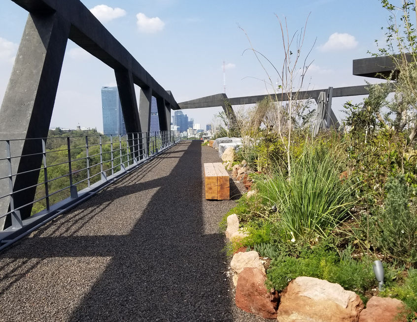 Cuenta con techos verdes y un roof garden, que no solo embellecen el paisaje urbano, sino que también contribuyen a la eficiencia térmica del edificio. La creación del roof garden fue todo un reto, ya que requirió el traslado y montaje de cada elemento a gran altura. Este espacio se ha convertido en un verdadero refugio natural gracias a una cuidada selección de vegetación mediterránea, ideal para las condiciones del lugar y perfecta para brindar frescura y color durante todo el año.